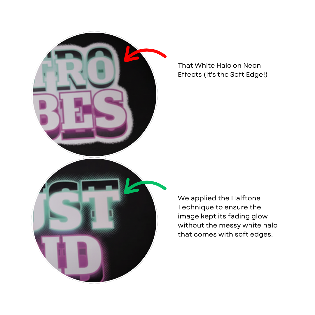 If your design features soft edges or gradual fades, you might notice a white "halo" around the print on your garment. To achieve a seamless fade-out effect and completely avoid that white border, consider incorporating a halftone technique into your artwork.
