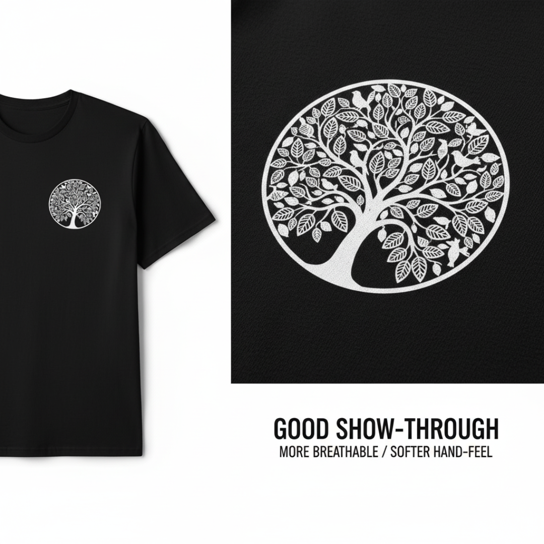 Want a transfer that's barely noticeable? Increase your negative space! Designs with plenty of "show through" are more breathable and result in a dramatically softer hand feel when you touch the garment.